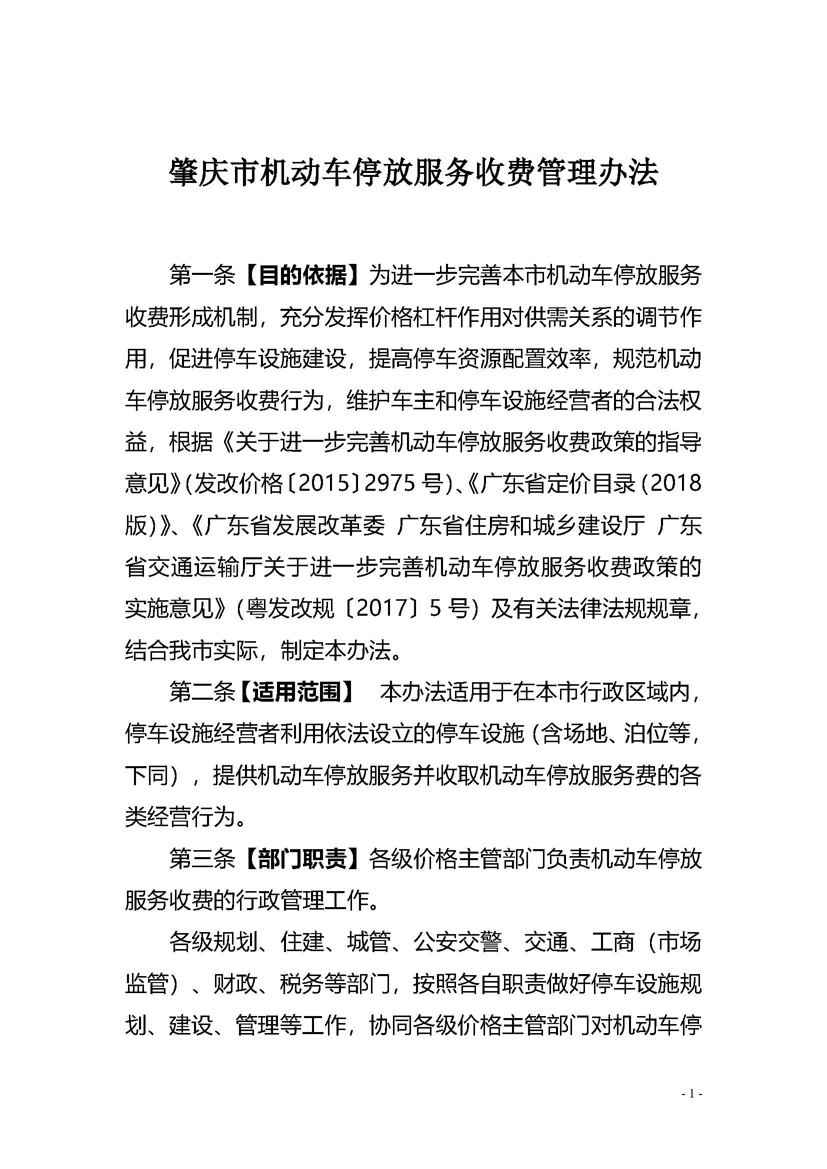 关于印发《肇庆市机动车停放服务收费管理办法》的通知
