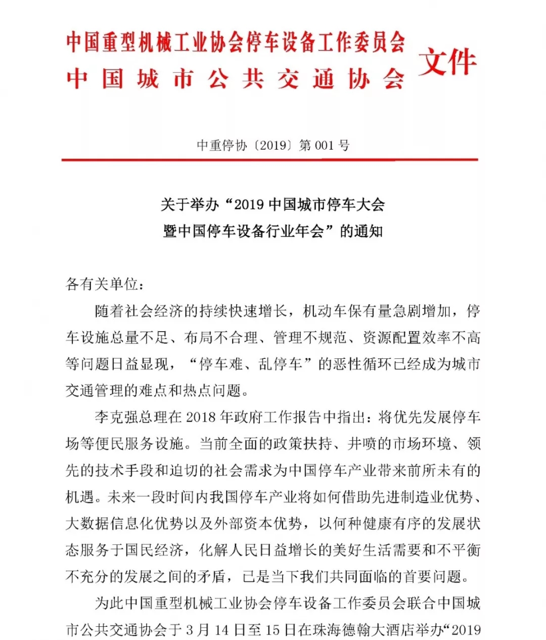关于举办“2019中国城市停车大会暨中国停车设备行业年会”的通知