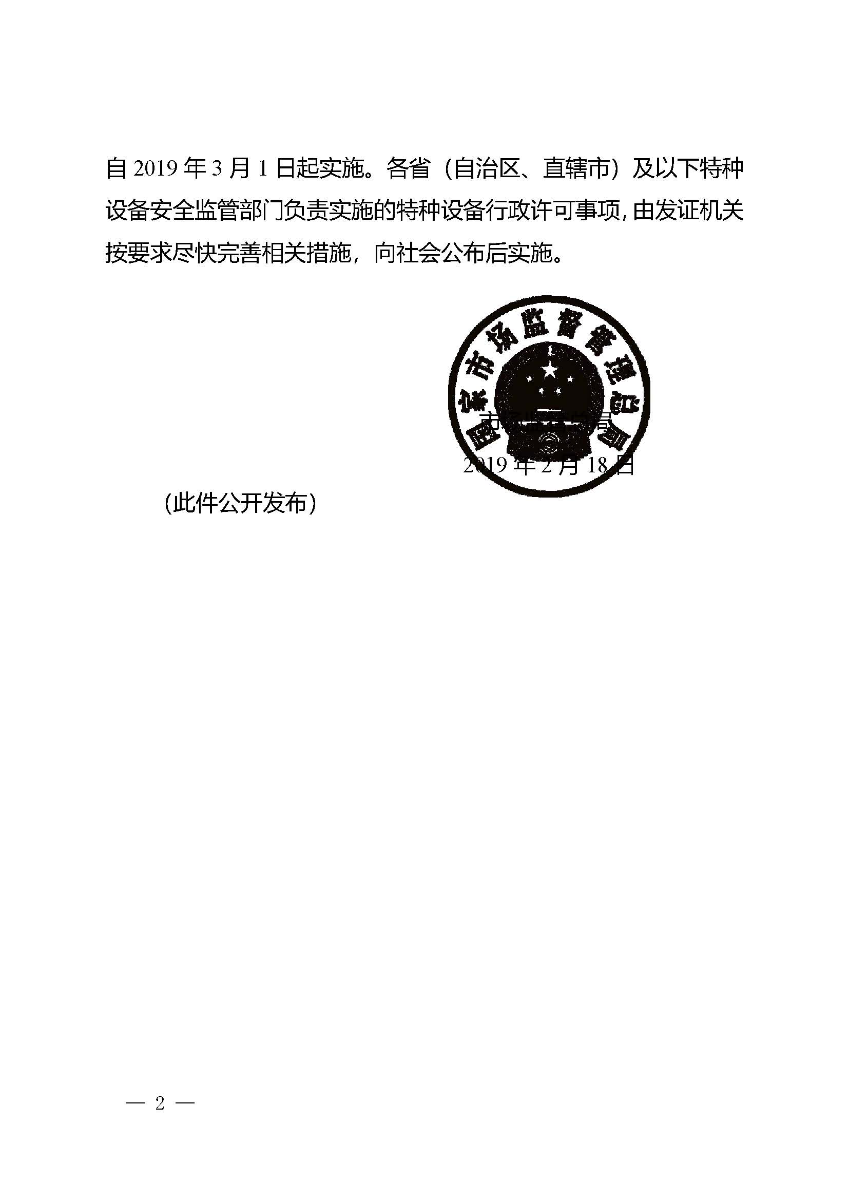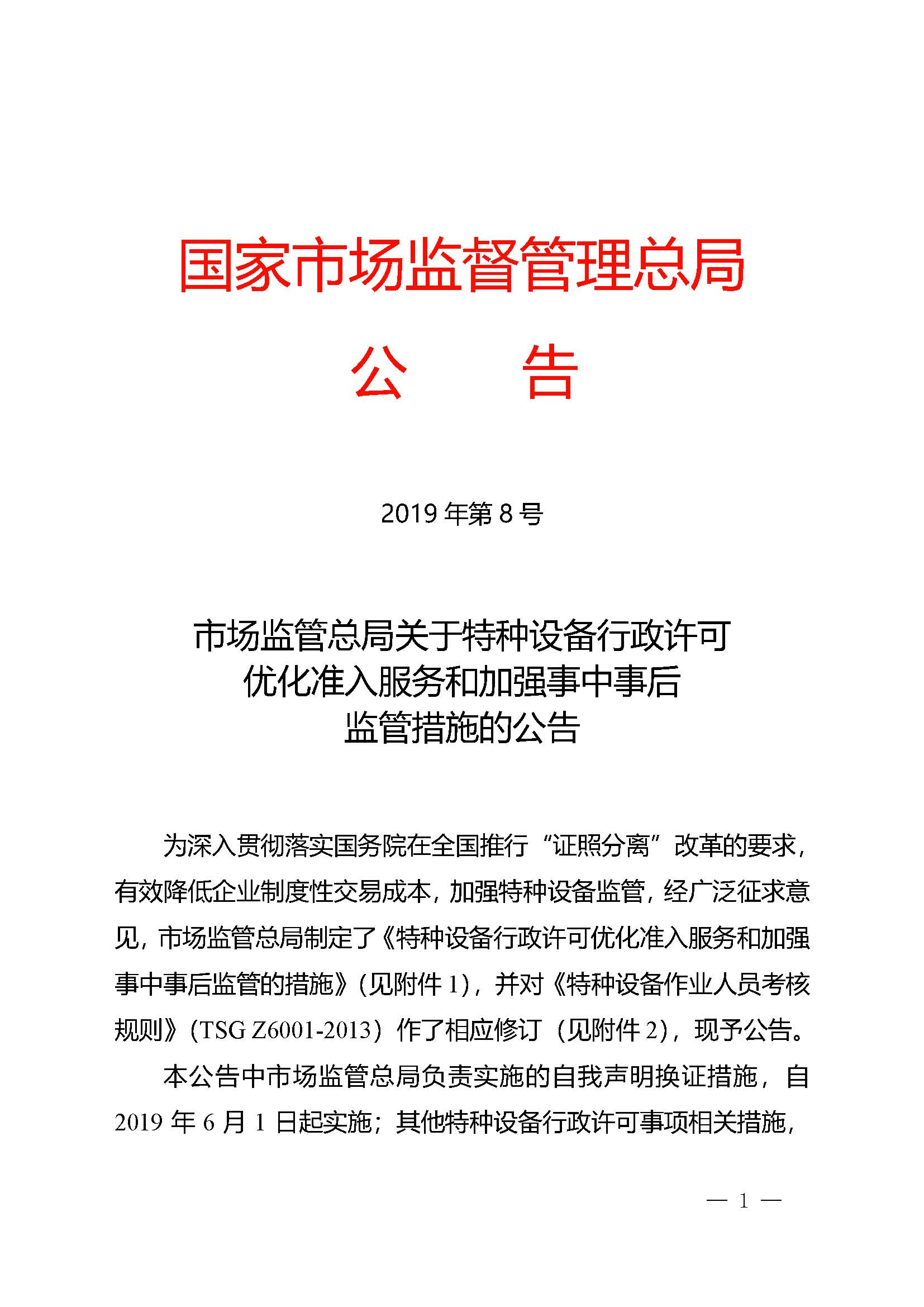 市场监管总局关于特种设备行政许可优化准入服务和加强事中事后监管措施的公告