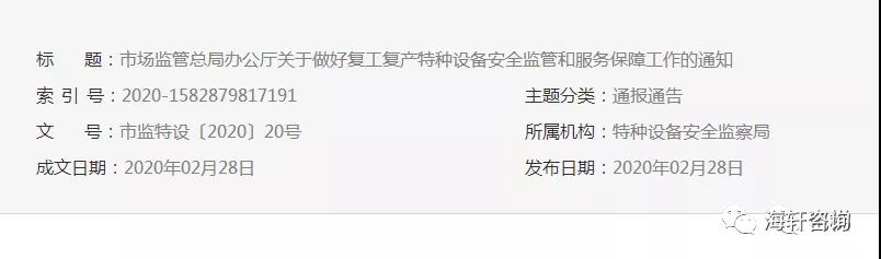 近期,国务院安委会办公室、应急管理部印发《关于切实加强复工复产安全防范和安全服务的通知》(安委办明电〔2020〕2号),市场监管总局、国家药监局、国家知识产权局印发《支持复工复产十条》(国市监综〔2020〕30号),对疫情防控期间支持企业复工复产、落实安全责任、做好服务保障作出部署要求。各地市场监管部门要充分发挥职能作用,落实相关要求,做好特种设备安全监管和服务保障工作,支持企业复工复产。现就有关事项通知如下: