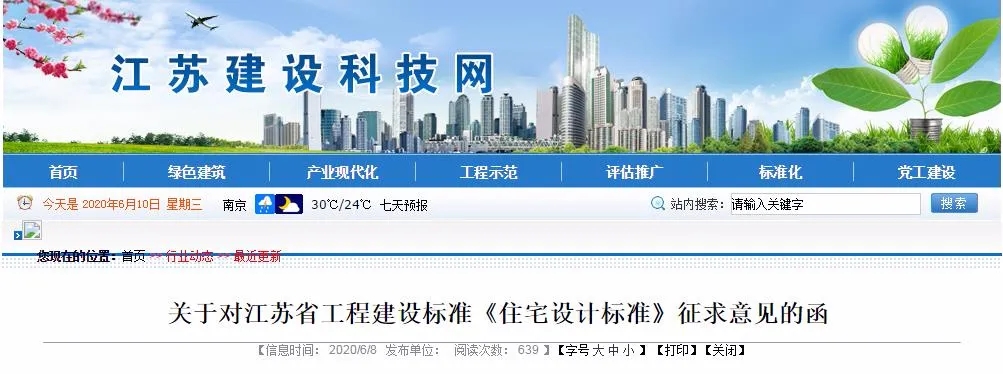 据了解,江苏省《住宅设计标准》自2000年5月实施以来,至今已超过20年。今年,新冠肺炎疫情给整个社会带来巨大的冲击和影响,人们开始重新审视自己的居家环境,既有住宅普遍存在的硬件卫生防疫性能不足、居住安全保障技术缺失、应急改造可操作性不强等问题逐渐暴露出来。为了满足居民对高品质住宅的需求,提升居住环境质量,与先进技术应用迭代相适应,省住建厅牵头对该标准进行全面修订。