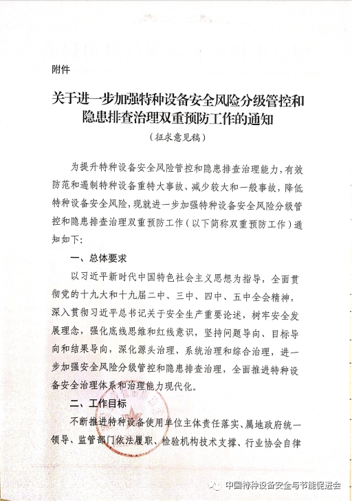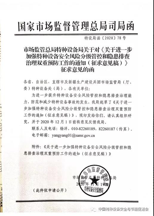 总局特设局关于对《关于进一步加强特种设备安全生产风险分级管控和隐患排查治理双重预防工作的通知》