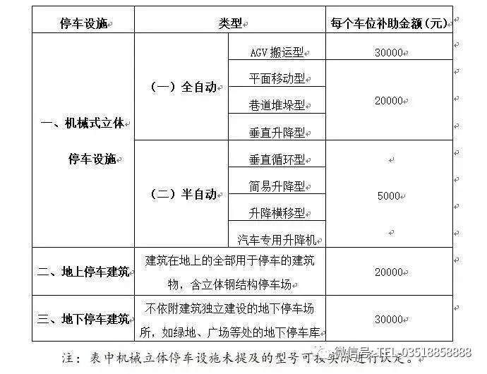 适用范围:在各区和市级功能区范围内,投资建设(包括改建、扩建)的公共停车场。补助资金:机械式停车库可按不超过工程建安成本的25%一次性资金补助。