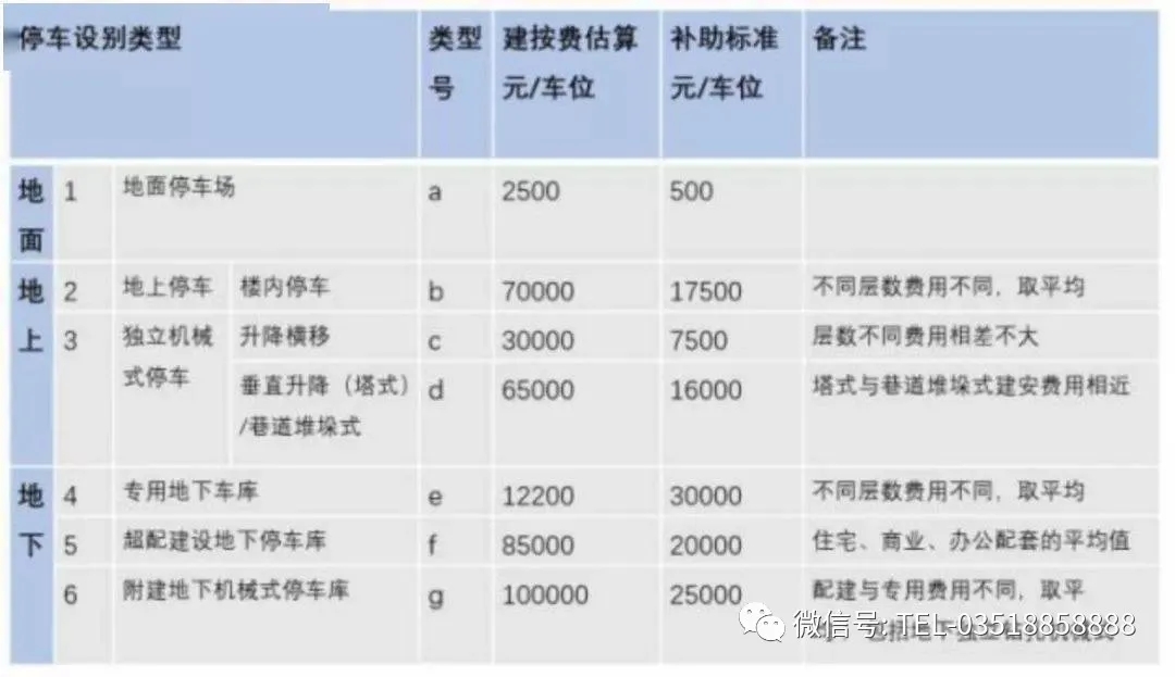 1.地下停车场。独立建设的地下公共停车场,每泊位补助2.2万元。附建地下立体机械式公共停车场,每泊位补助2万元。