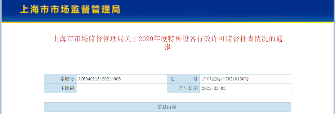 上海市市场监督管理局关于2020年度特种设备行政许可监督抽查情况的通报