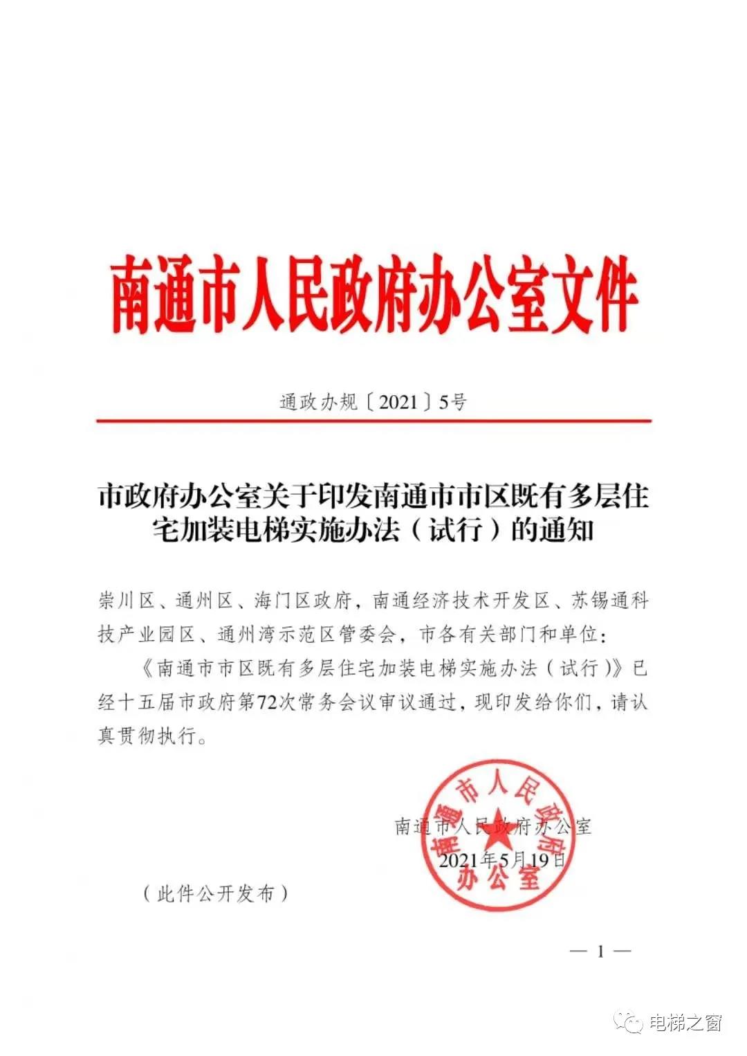 南通市区加装电梯政策将于7月1日实施